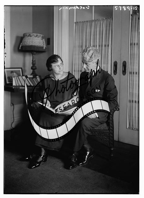 Goldman,men,women,reading newspapers,chairs,suit,dress clothes,Bain News Service