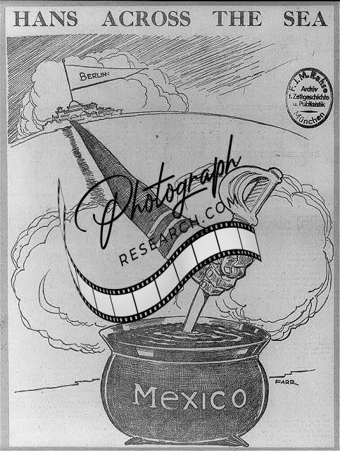 'Hans across the sea',cartoon drawing,Mexico,Berling,1915,Farr,Evening Telegram