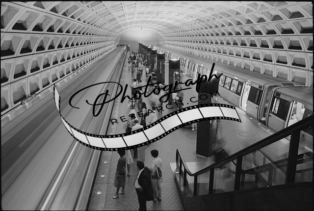 [[People on the platform and train at the Foggy Bottom metro station on the Washi