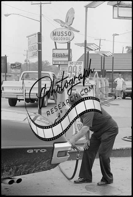 [[Man at a gas station putting gasahol into his car]] / MST.