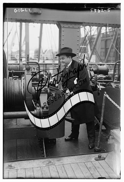 Beniamino Gigli,pulleys,ropes,ship passengers,boats,men,coats,Bain News Service