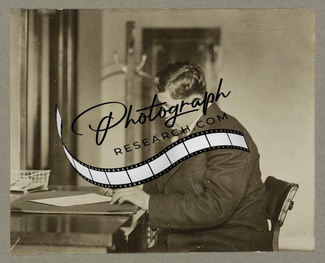 Jim Thorpe,the olympic hero,at desk writing,March 27,c1913,Athlete