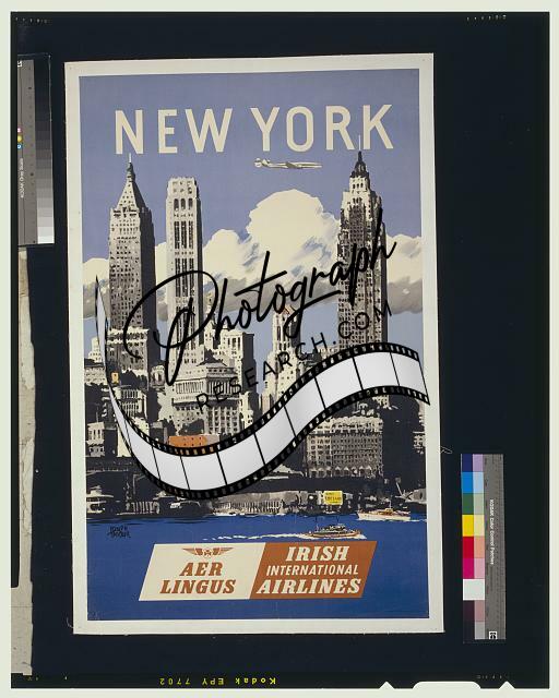 New York,NY,Skyline of Manhattan as seen from the River,Aer Lingus Airplane,1955