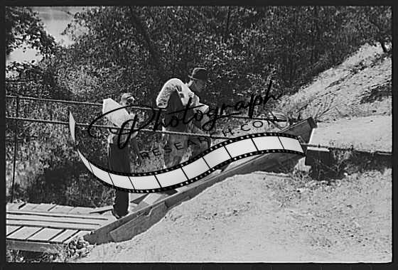 Title: Carrying home groceries and supplies across the swinging bridge, Breathitt County, Jackson, Kentucky