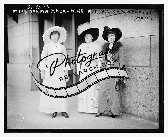 Mrs. N.E. Mack,daughters,Miss Norma Mack,Miss Harriet Mack,purses,women,dresses