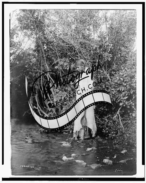 Water's edge,Arikara Indians,women,clothing,buckskin dress,North Dakota,ND,c1908