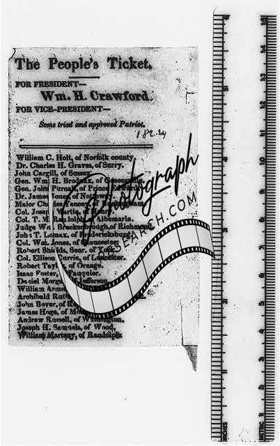 Photo: The People's Ticket,Electorial Ticket,William H Crawford,Virginia,1824