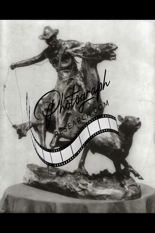 Maverick,Statue,Cowboy on horseback roping calf,c1923