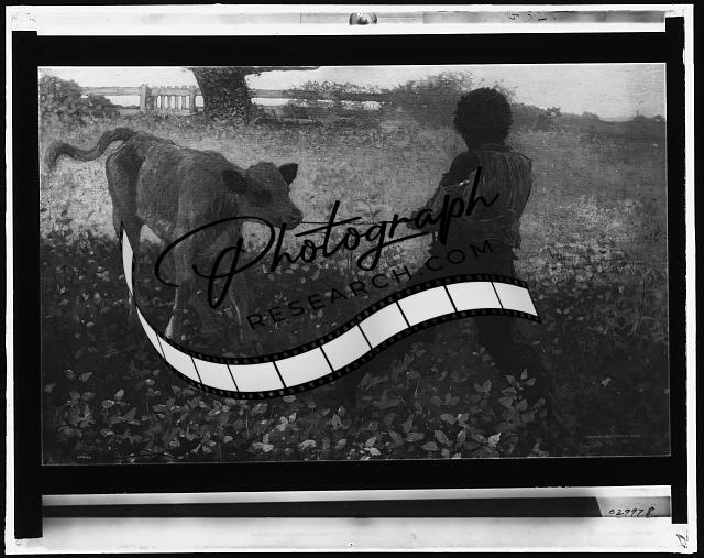 Unruly calf,African American,children,cattle,cow,W Homer,Detroit Publishing,1900