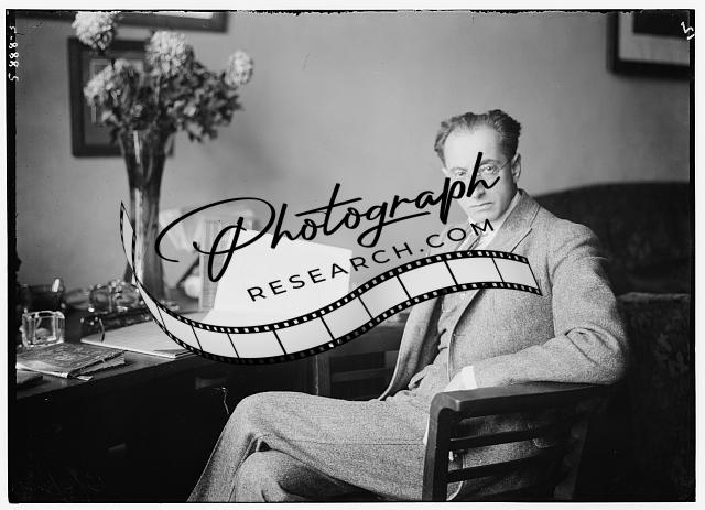 Unidentified man,chairs,desks,papers,books,flowers,vases,seats,Bain News Service