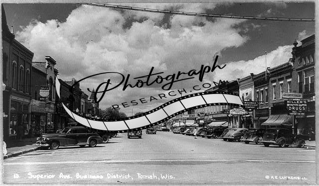 Superior Avenue business district,buildings,automobiles,Tomah,Wisconsin,WI,c1946
