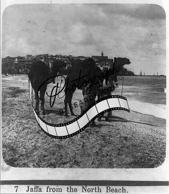 Jaffa from the North Beach,people,two camels,Israel,by the sea,1900-1934,photo