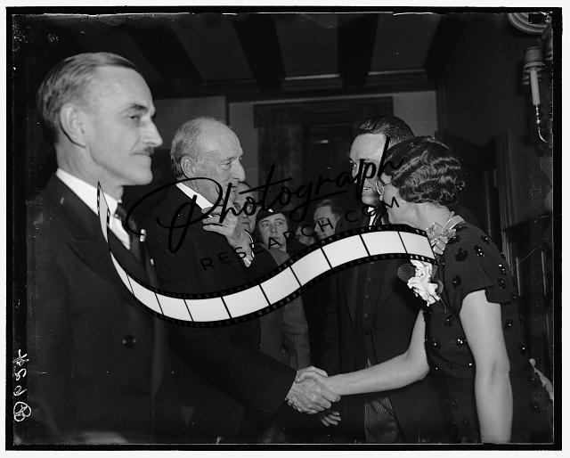 Justice James C McReynolds attends reception,Gordon Browning,Ida Leach,1937