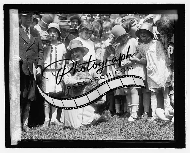 Mrs. Coolidge & raccoon,Easter egg rolling,4/18/27,White House,Washington,DC