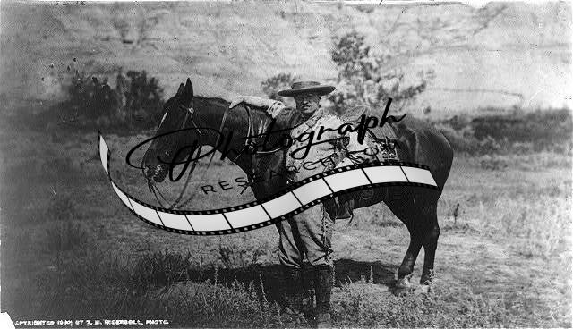 Theodore Roosevelt,wearing cowboy outfit,horse,President of United States,c1910