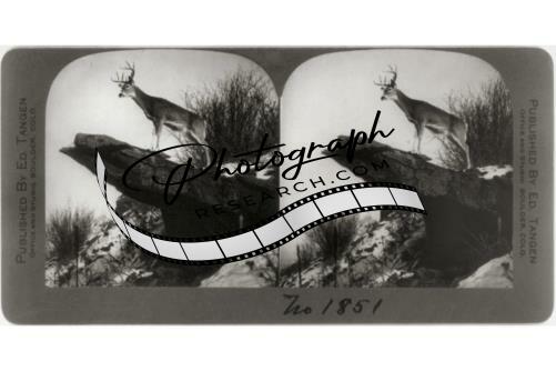 Large buck deer on rock projecting from cliff,Febrary 2,c1911,animal