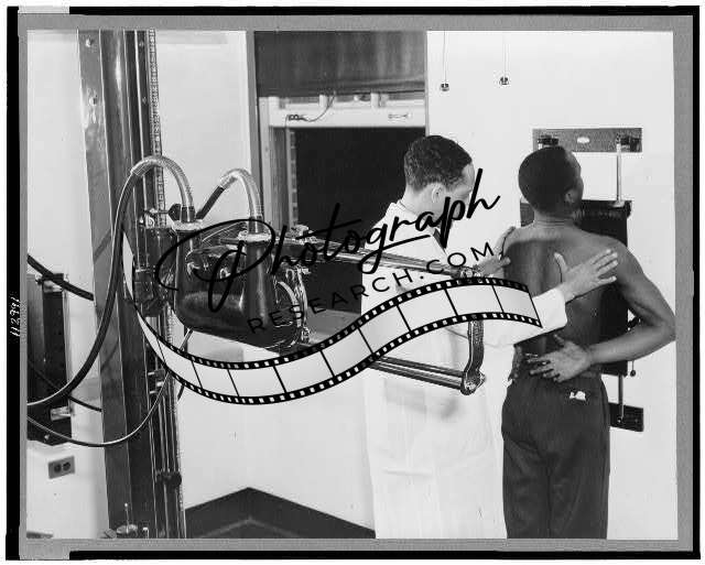 Doctor placing patient,chest x-ray, diagnosis 1937