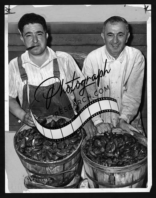Joseph Apicella,Ralph Apicella,baskets of mussels,Fulton Fish Market,New York,NY
