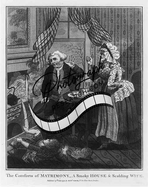 Comforts of Matrimony,smoky house,scolding wife,July 27,1790,fireplace,child