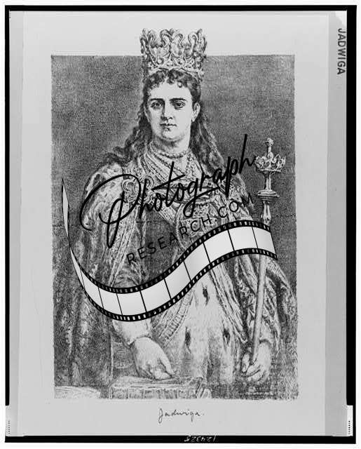 Queen Jadwiga,wearing cape,crown,holding sceptor,Queen of Poland,Royalty