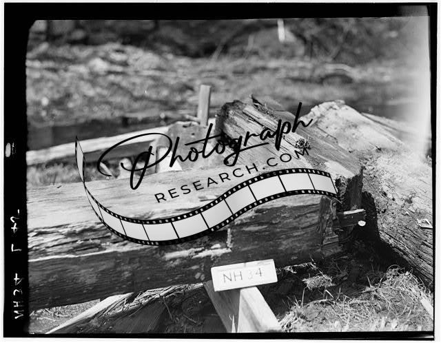 Title: 43. Historic American Buildings Survey J. C. Fletcher, Photographer END OF OVERLAY WITH NORTH WEST CORNER POST - James Saw Mill, Narrows Brook, Northwood Narrows, Rockingham County, NH