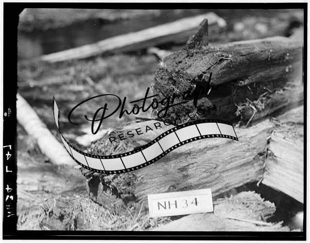 Title: 44. Historic American Buildings Survey J. C. Fletcher, Photographer END OF OVERLAY & CORNER POST WITH END GIRT - James Saw Mill, Narrows Brook, Northwood Narrows, Rockingham County, NH