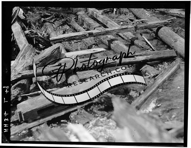 Title: 47. Historic American Buildings Survey J. C. Fletcher, Photographer END OF OVERLAY NORTH WEST CORNER & BOTTOM END OF POST - James Saw Mill, Narrows Brook, Northwood Narrows, Rockingham County, NH