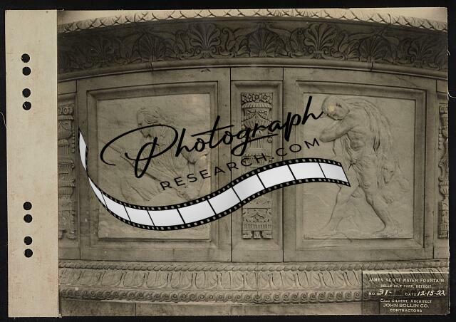 Summary: Record photograph shows fountain designed by Cass Gilbert and built by contractors John Bollin Co., with sculptures by Herbert Adams.