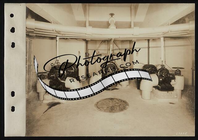 Summary: Record photograph shows pipes and other hydraulic equipment under fountain designed by Cass Gilbert.