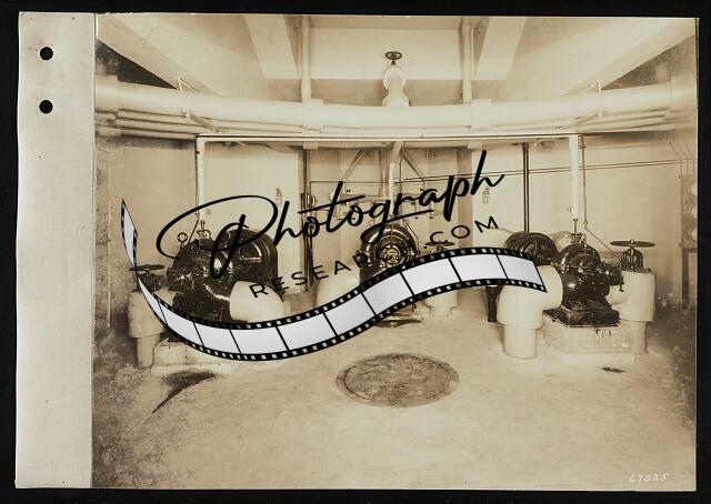 Summary: Record photograph shows pipes, pumps, and other plumbing components under fountain designed by Cass Gilbert.