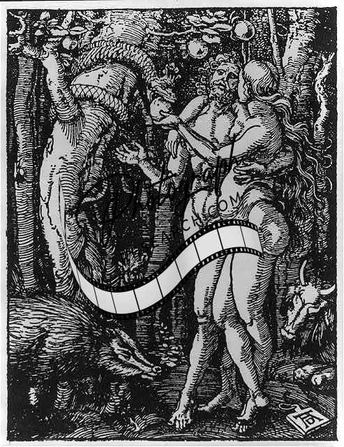 Adam and Eve in Paradise,Snake,Apple, by Albrecht Durer