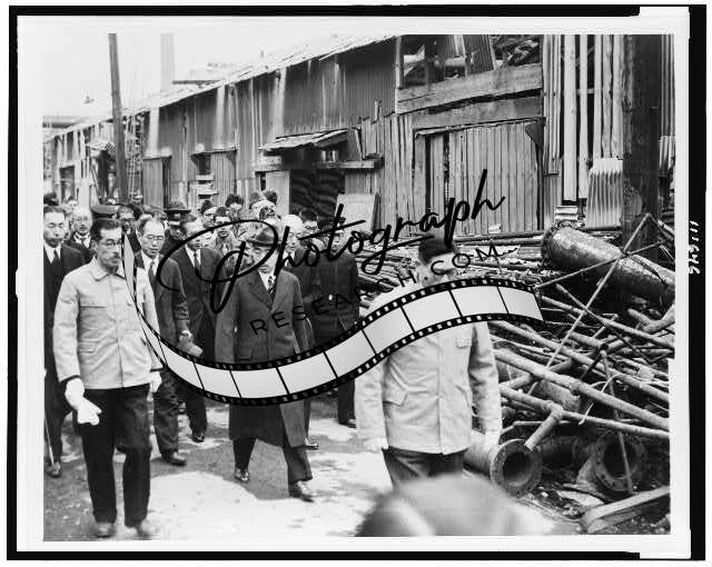 Hirohito, bombed plant,Showa Electric Industry Co 1946