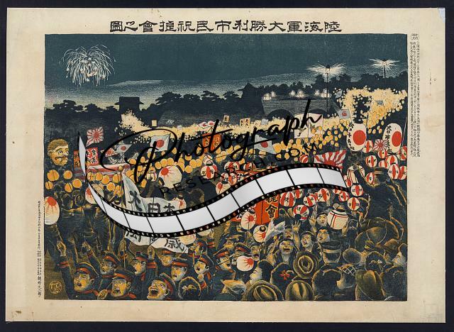 Citizens' victory celebration,Russo Japanese War,Fireworks,Soldiers,1904