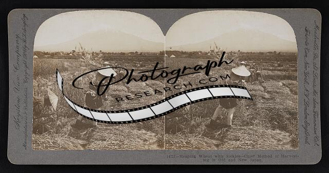 Reaping wheat with sickles--chief method of harvesting in old and new Japan