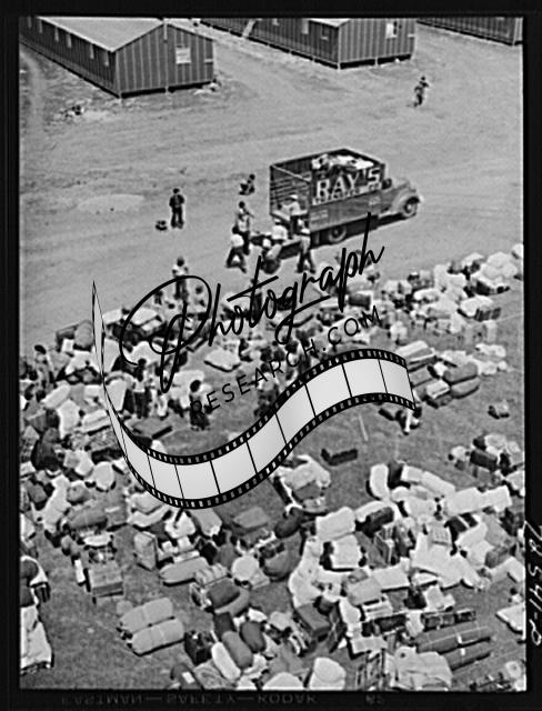 Title: Salinas, California. Japanese-Americans and their baggage arriving at reception center