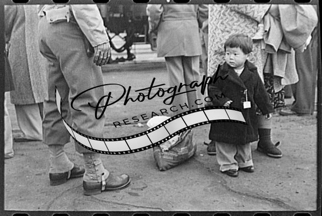 Title: Los Angeles, California. Japanese-American evacuation from West Coast areas under U.S. Army war emergency order. Japanese-American child who will go with his parents to Owens Valley