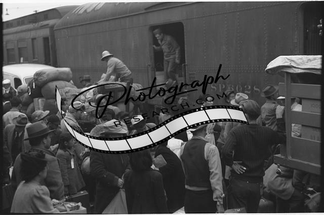 Title: Los Angeles, California. The evacuation of the Japanese-Americans from West Coast areas under U.S. Army war emergency order. Boarding a train for Owens Valley