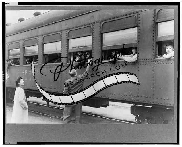 Title: Los Angeles, California. The evacuation of Japanese-Americans from West Coast areas under U.S. Army war emergency order. Japanese-American family waiting for train to take them to Owens Valley