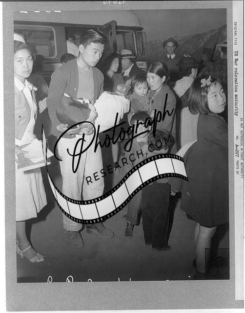 Family upon Arrival at Manzanar,World War,WWII,Japanese Americans,Relocation