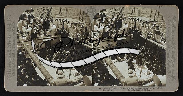 Japanese dancers entertaining voyagers aboard a Pacific Mail Steamship