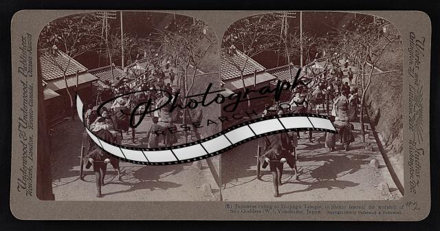 Japanese riding to Daijingu temple, to Shinto festival for worship of sun goddess (W.) Yokohama, Japan