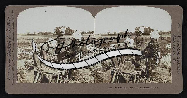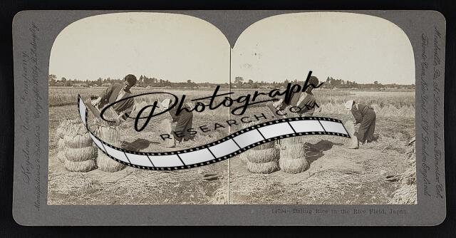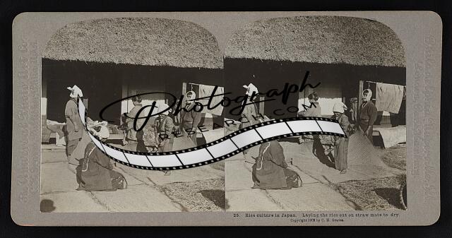 Rice culture in Japan. Laying the rice out on straw mats to dry