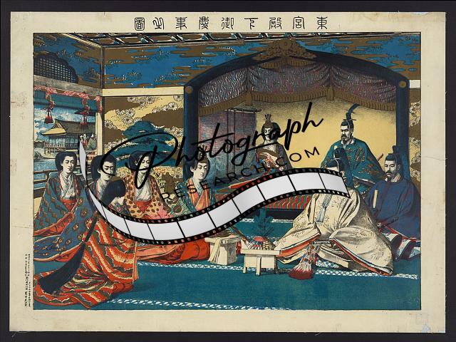 Summary: Print shows a group portrait of Meiji, Emperor of Japan and the imperial family.