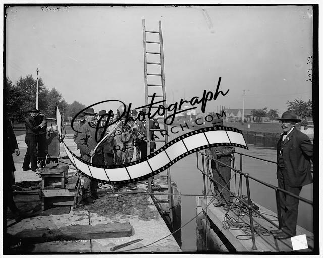 Repairing lock gate,hydraulic engineering,ladders,Sault Sainte Marie,MI,c1908