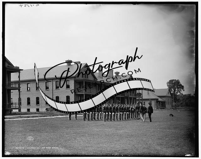 Inspection,Fort Brady,military personnel,buildings,Sault Sainte Marie,MI,c1908