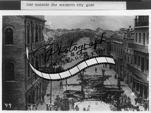 Japanese Occupation of Tsinan,China,1928,wide street,soldiers and vehicles