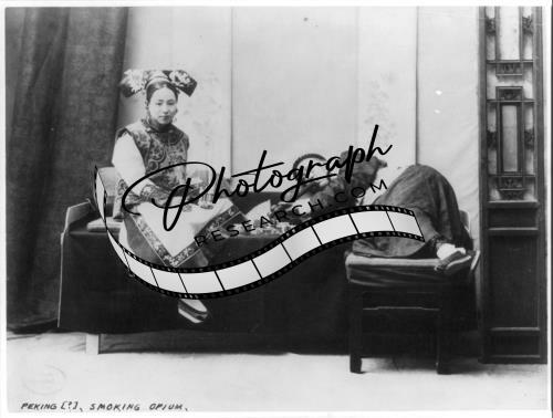 Peking,Beijing,smoking opium,Chinese man and woman,c1900