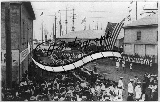 Landing,waterfront,USS Boston,Annexation ceremonies,military parades,piers,1930
