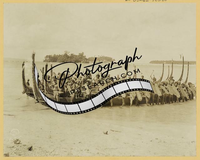 War canoe,Vella Lavella,warriors,shields,spears,boats,Solomon Islands,c1922