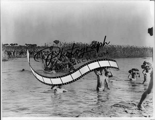 Japanese soldiers walking waist-deep in water,river,1930-1940,military